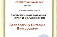 Поздравляем доцента кафедры сервиса, кандидата психологических наук, академика РАЕН - Виталия Викторовича Белобрагина, с новыми научными победами: присвоением ему учёного звания профессора Российской академии естествознания, почётного звания «Заслуженный работник науки и образования» за заслуги в разработке приоритетных направлений науки и техники, создании научных школ, воспитании и подготовке научных кадров, а также избранием его почетным доктором наук (DOCTOR OF SCIENCE, HONORIS CAUSA) Российской Академии Естествознания. Ведение реестра DOCTOR OF SCIENCE, HONORIS CAUSA поручено International Academy Of Natural History (Germany).
