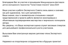Экспертный совет международного фестиваля-конкурса детско-молодёжного творчества «Талантливая планета» выразил благодарность заведующему кафедрой дизайна костюма и среды Марии Михайловне Преображенской!
