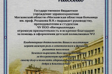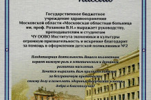 Главврач Московской областной больницы имени профессора Розанова в подмосковном городе Пушкино Мануйлов Владимир Михайлович вручил благодарственные письма, адресованные руководству, преподавателям и студентам «Интерколледжа» и Института экономики и культуры за помощь в оформлении детских медицинских учреждений Пушкинского городского округа. Владимир Михайлович от лица медработников поблагодарил наших ребят за их вдохновенный и добровольный труд, отметил высокий творческий уровень работ наших студентов, передал восторженные отзывы юных пациентов и их родителей. С ответным словом выступил директор «Интерколледжа» Тимур Юрьевич Ивлиев. Он рассказал пушкинцам о том, с каким энтузиазмом наши студенты отозвались на просьбу украсить стены детских поликлиник, как ответственно подошли к своей работе и о том, как наши преподаватели Банк Иван Николаевич и Семенихина Валентина Александровна смогли организовать творческий процесс. Тимур Юрьевич также отметил важность волонтерской работы наших студентов, отметив то, что такой труд приносит пользу не только практического характера, но и помогает развить морально-нравственные качества будущих дизайнеров.