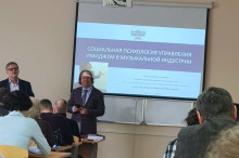 Заведующий кафедрой сервиса, профессор Виталий Викторович Белобрагин выступил в знаменитом Научно-исследовательском университете МЭИ на кафедре рекламы, связей с общественностью и лингвистики с большим научным докладом, посвященным новым направлениям в области социальной психологии управления и психологии имиджа. Виталий Викторович поделился итогами своего эмпирического исследования по управлению имиджем в музыкальной индустрии и обоснованию новых разделов науки, выступив перед строгой научной публикой МЭИ. Научные воззрения В.В. Белобрагина вызвали яркий и неподдельный интерес ученых! Поздравляем!