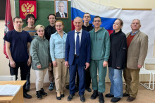 12 декабря с Днем Конституции России руководство Института экономики и культуры поздравило студентов юридического профиля. С приветственным словом к студентам и преподавателям обратился проректор ИЭиК В.В. Масюк, который обратил особое внимание на высшую юридическую силу Конституции России, поблагодарил присутствующих научных и ученых деятелей юриспруденции: профессора кафедры юриспруденции Д.П. Ткаченко, доцента кафедры юриспруденции В.Н. Морозова, заведующего кафедрой уголовно-правовых дисциплин М.Н. Никитина, заведующую кафедрой гражданско-правовых дисциплин Д.С. Милинчук.