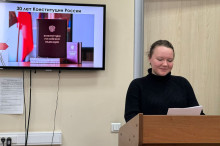 Заведующая кафедрой гражданско-правовых дисциплин Д.С. Милинчук сообщила о том, что в ее библиотеке хранится экземпляр Конституции России с авторским автографом одного из ее разработчиков.