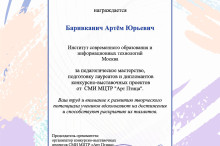 Студентов наградили дипломами лауреатов второй степени, а курирующего преподавателя Баривканича Артёма Юрьевича благодарственное письмо.