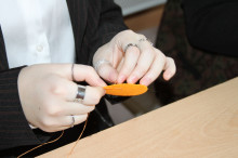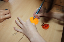В рамках первого мастер-класс участникам были предоставлены все необходимые материалы для создания броши-тыквы своими руками - фетр, бусины, ленты и умелые руки наставников. В результате через час освоения новых навыков тонкой вышивки, обмётки и работы с новыми материалами, гости мероприятия получили уникальный осенний аксессуар – аккуратную и стильную тыковку.