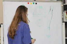 Второй мастер-класс был посвящён разъяснению пропорций тела человека и техникам перенесения их на бумагу, в результате чего дизайнеры костюмов создают силуэты моделей для новых коллекций одежды. Студенты кафедры дизайна костюма и среды обучали гостей технике рисования человеческого тела в стиле скетча или наброска, когда требуется быстро зарисовать посетившую творца идею. Данный навык будет полезен всем, кто интересуется основами рисунка, включая пропорции фигуры, анатомию и основы стилизации.