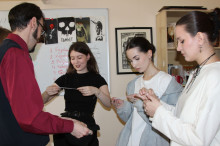 Далее прошел процесс распределения команд и жеребьевка, в которой студентам попадалась определенная компания и эпоха. В итоге было составлено три команды, в каждой по 6 человек. И тогда процесс изучения компаний и эпох, стилизации логотипов, слоганов и рекламных плакатов начался. Первой команде достался банк ВТБ в стиле эпохи Возрождения, второй - банк «Промсвязьбанк» в византийском стиле, а третьей команде попался каршеринг автомобилей «Делимобиль» в стиле средневековой Руси. Каждая команда действовала слаженно и сплочённо. Они должны были уложиться за полтора часа и в конце представить свои работы в виде презентаций. Команда «Делимобиль» решила заменить руль на логотипе на колесо телеги, а название на «Делителега». Их слоганом стало «Копейка телегу гонит». Команда ВТБ замелила привычный логотип на руку с контрактом. Слоганом стала фраза «Мы смотрим в будущее». На логотипе «Промсвязьбанк» появился двуглавый орёл. «ПСБ - банк сильных людей» - новый слоган для компании. Каждая группа успела за такое короткое время провести такое глубокое исследование и детализированную стилизацию. Кроме того, ребята продемонстрировали отличные знания в области истории искусств и дизайн-проектировании.