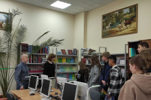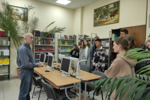 Исполняющая обязанности заведующего библиотекой Ярослава Юрьевна Бергетова и заведующий кафедрой психологии Владислав Евгеньевич Петров показали возможности библиотеки вуза, провели экскурсию по книгохранилищу, представили обзор публикаций по различным психологическим дисциплинам.