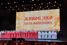 В финале концерта большой сводный хор исполнил знаменитую народную песню «Ах ты, степь широкая», традиционный военно-патриотический гимн «К вам, павшие». В этот момент на мультимедийном экране транслировалась военная хроника, и здесь весь зрительный зал одновременно поднялся, чтобы почтить память предков. А когда зазвучала знаменитая патриотическая песня "Славься" на музыку Михаила Глинки из заключительной сцены «Жизнь за царя» оперы "Иван Сусанин", зал стал подпевать. А услышав звуки марша «Прощание славянки», зрители снова поднялись. Это свидетельствует о глубоком уважении к вечной памяти героев.