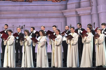 Благоговейно и трепетно внимали мы словам и звукам молитвенного песнопения, знакомым с детства и живущим в сердце каждого православного русского человека «Христос Воскресе», «Богородице Дево, радуйся», исполняемым во время церковных служб и торжественных церемоний.