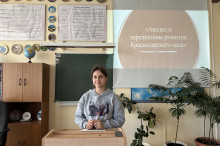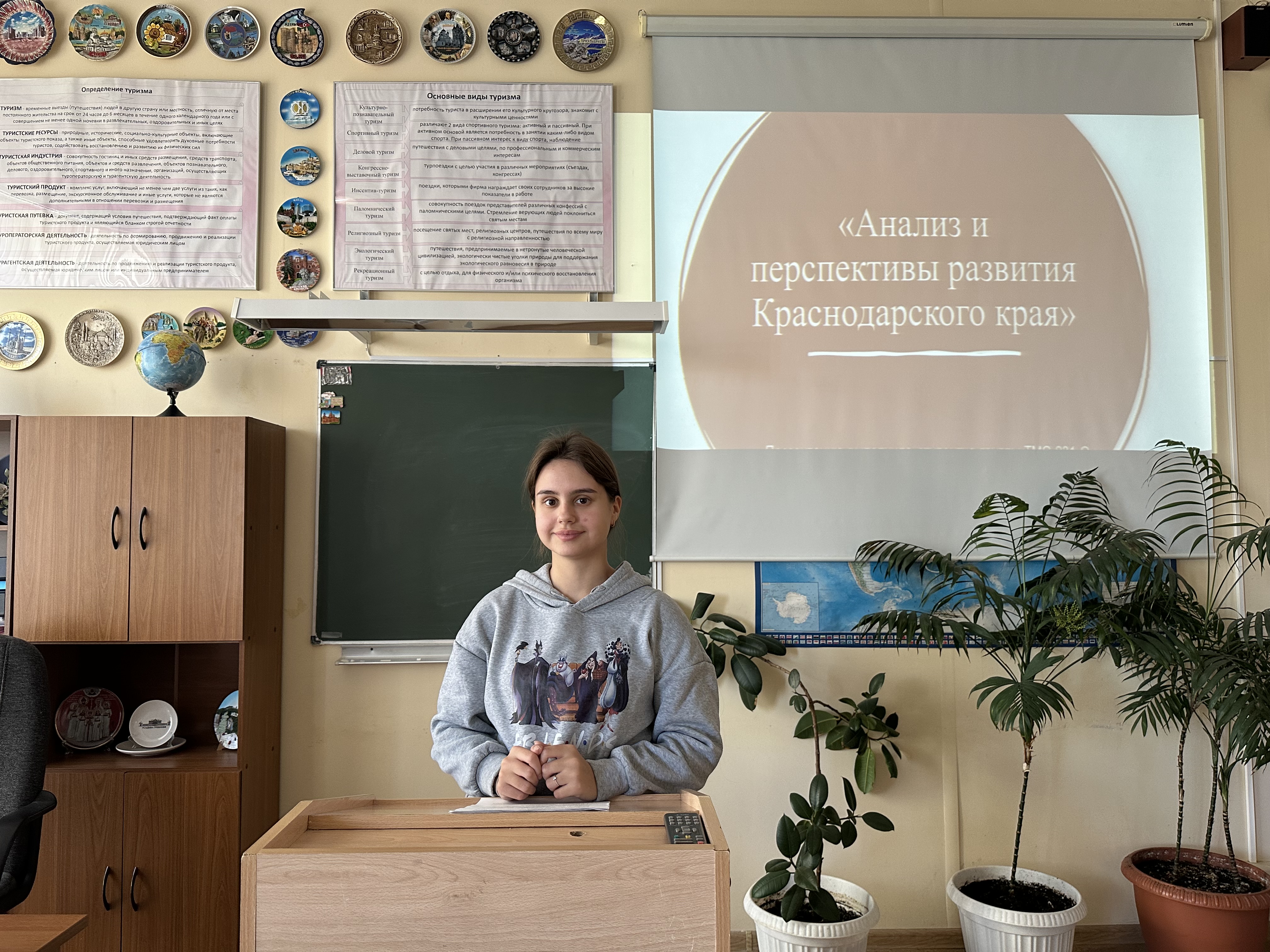 Рогачева Полина (гр. ТМС-231-О), в своем докладе «Анализ и перспективы развития Краснодарского края» сосредоточилась на самом популярном у россиян направлении. Она выявила и озвучила сравнительную статистику посещений региона в прошедшем 2024 году и сопоставила показатели с прошлым и позапрошлым годами.
