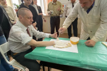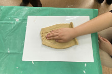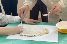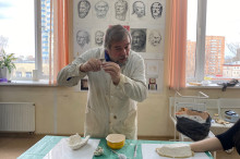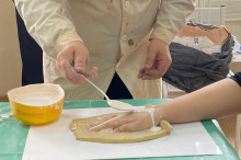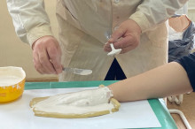 После посещения мастер-класса студенты на практике познакомились с профессиональной методикой изготовления негативного слепка кистевой части руки человека, изготовленного наливным способом (сухой гипс, разведённый в воде).