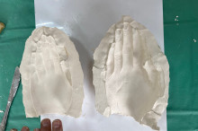 Чтобы изготовить позитивный слепок, в полученную негативную форму кистевой части руки человека заливают жидкий гипс. После застывания гипсовой массы, образовавшийся слепок руки извлекают из первоначальной формы.