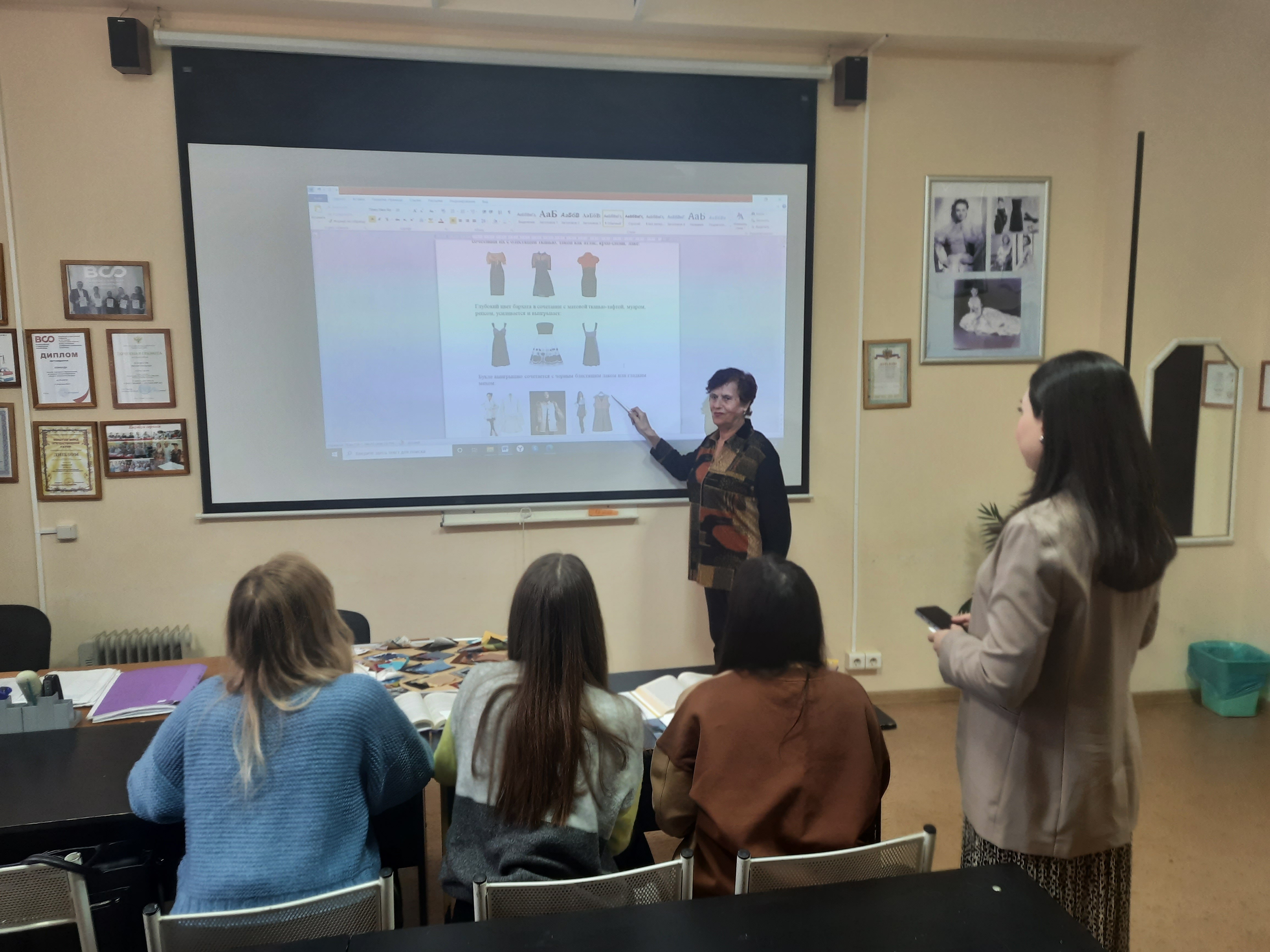 На кафедре сервиса для студентов группы СИП-201-Д в рамках дисциплины "Материалы для процессов сервиса в индустрии моды и красоты" прошло практическое занятие в форме мастер-класса профессора кафедры Светланы Петровны Фоминой. Тема занятия: «Принципы подбора материалов в пакет одежды».