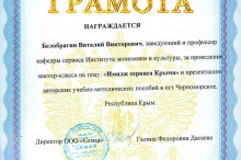 Новый учебный год ознаменовался для кафедры сервиса серией мастер-классов и презентаций книг ее заведующего и профессора, академика РАЕН Виталия Викторовича Белобрагина в западной части Крыма, в пгт. Черноморское.