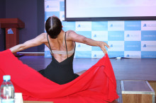 Кульминация – дефиле в вечерних платьях. Под зажигательную музыкальную композицию изящные девушки выбранными нарядами, стилем походки, всем своим образом стремились поразить публику и, рискнем предположить, оставили след в сердцах и душах.
