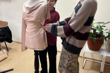 Мастер-класс был посвящён демонстрации и обучению методу наколки на манекене. Это техника создания одежды на манекене, которая исторически использовалась и продолжает использоваться в парижских ателье.