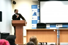 С вступительным словом выступил заведующий кафедрой дизайна, кандидат педагогических наук, доцент Быковская А.А. Основной докладчик – Мациевский Денис Евгеньевич член союза художников России, доцент кафедры дизайна выступил на тему: "Техники рисунка и история их развития". Содокладчик – Вилков Владимир Александрович ст. преподаватель кафедры дизайна, член союза художников России осветил: "Виды живописи". В качестве почётного гостя конференции выступил генеральный директор и действующий графический дизайнер ООО "РекИдея" Гаделия Давид Акакиевич с темой доклада: "Особенности работы графического дизайнера в производстве наружной и интерьерной рекламы". Кроме того Гаделия Давид Акакиевич пригласил на выездное занятие студентов нашей кафедры, чтобы посмотреть работу своей фирмы.