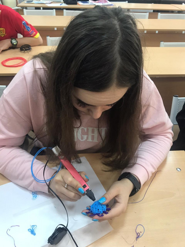 Студенты узнали особенности работы с 3D ручками и преимущества их перед принтерами. Тема встречи "Творческие идеи 3D ручкой. Создание объемных форм". На этой встрече студенты просмотрели электронную презентацию и на мастер-классе успели выполнить самостоятельно маленькие фигурки.