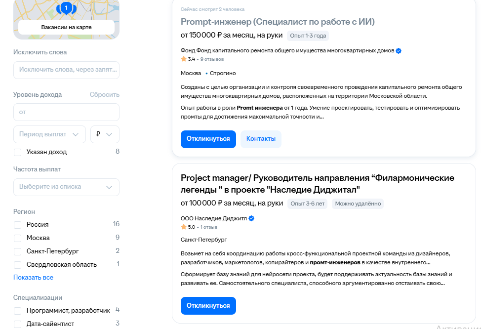Стоит отметить, что далеко не каждая компания нуждается именно в таком уровне квалификации сотрудника. Большинство организаций заинтересованы скорее в сотрудниках, умеющих эффективно взаимодействовать с существующими моделями нейросетей, используя готовые инструменты и решения. Таким образом, основная масса вакансий связана не столько с разработчиками запросов, сколько с пользователями, готовыми применять технологии AI в своей работе.