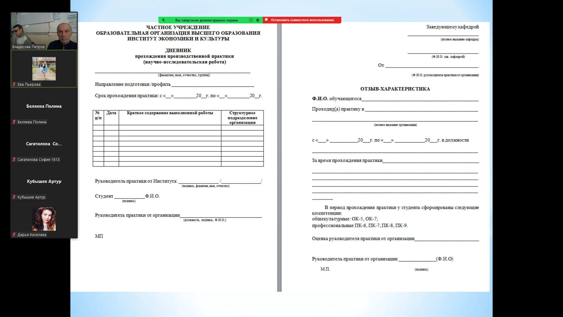 Дополнительно обращаем внимание студентов на то, что даты прохождения практик размещены на стенде возле 610-й аудитории, шаблоны документации необходимо брать строго у методиста кафедры – Пьеровой Евы Николаевны.