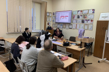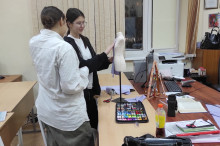 На кафедре дизайна состоялся открытый урок по дисциплине «Конструирование костюма» в группе ДКП 211-О на тему «Комбинированное конструирование». Занятие провела Анна Алексеевна Быковская, зав. кафедрой дизайна костюма и дизайна среды, к.п.н., доцент. В процессе урока была представлена электронная презентация, которая состояла из двух основных частей. Первая позволила студентам вспомнить основные требования к построению базисной сетки чертежа основы конструкции плечевого изделия и рассмотреть методы получения деталей конструкции. Вторая часть была посвящена получению конструкции на манекене.