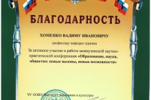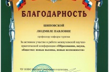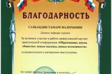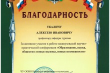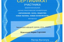 26 апреля 2016 года в рамках межвузовской научно-практической конференции «Образование, наука, общество: новые вызовы, новые возможности» на кафедре туризма было проведено заседание секции: «Особенности и тенденции подготовки кадров для туристской индустрии в современных российских условиях». В работе секции приняли участие более 50 человек, из них 26 сделали доклады по теме секции.
