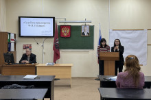 - Сулейманова Фаина (группа ЮГП-201-О) и Семенова Ирина (группа ПЭП-221-О), выступление на тему «Фёдор Никифорович Плевако»;