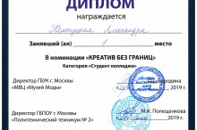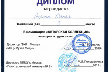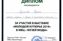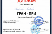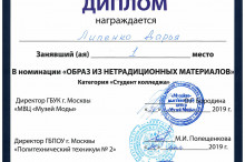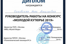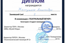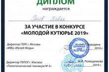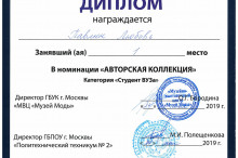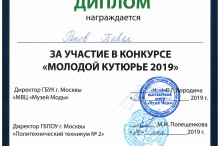 13 мая 2019 года состоялся конкурсный показ на территории ГБПОУ г. Москвы "Политехнический техникум № 2", по итогам которого прошла выставка "Молодой кутюрье" с 18 по 24 мая 2019 года в Музее Моды в Гостином дворе. Наши студенты под руководством Быковской Анны Алексеевны успешно прошли отбор и в полном составе представляли свои коллекции. 24 мая 2019 года в Музее Моды состоялся гала показ коллекций различных номинаций, и были награждены победители, среди которых наши студенты заняли призовые места!!!