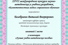 Поздравляем Белобрагина В.В. с победой в международном конкурсе
