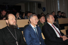 С приветственным поздравлением выступил ректор ИЭиК Владимир Дмитриевич Серяков. Почетными гостями праздничного мероприятия стали представитель от руководства ВАО МВД России ОРЛС подполковник юстиции Валюх Ирина Васильевна и подполковник полиции Сульдяйкина Елена Васильевна, заместитель командира роты по военно-политической работе, старший лейтенант Баринов Иван Николаевич, а также священнослужитель отец Андрей, выступивший с напутственным словом от лица Русской православной церкви.