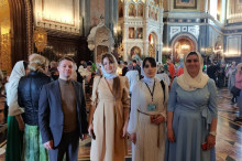 4 июня преподаватель кафедры туризма ИЭиК, специалист по работе с молодежью Храма Христа Спасителя Виктория Отто и студентка кафедры туризма Юлия Толкалина, которая является участником молодежного объединения Храма Христа Спасителя "Соборяне", вместе с остальными ребятами посетили Божественную литургию в кафедральном соборном Храме Христа Спасителя.