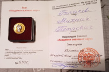 По решению Президиума Академии военных наук от 24. 06. 2024 года член академии Бочаров Михаил Петрович за большой вклад в патриотическое воспитание награждён Знаком «Академия военных наук». Торжественное вручение состоялось 27 декабря 2024 года.