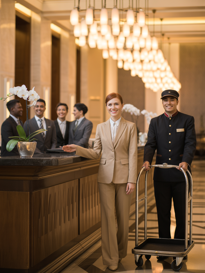 - Вежливое и дружелюбное приветствие. Персонал должен встречать гостей с улыбкой, проявлять готовность помочь, например, с багажом, создавая тем самым положительное первое впечатление.