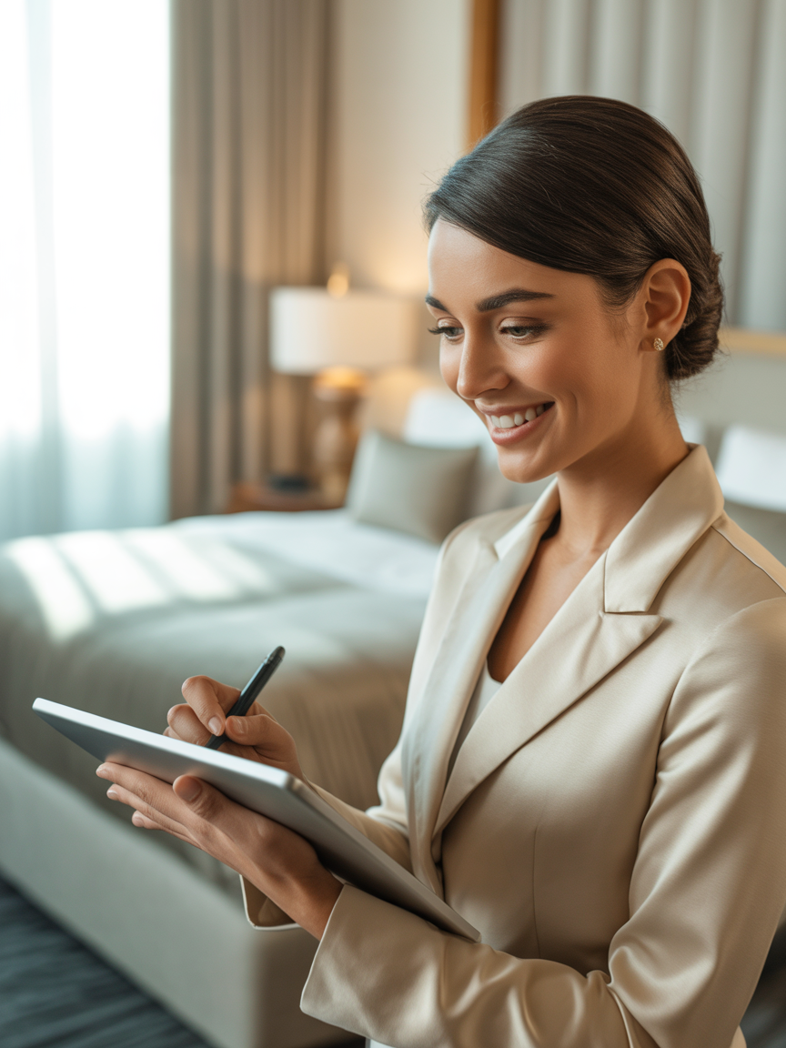 - Персонализация обслуживания. Обработка и выполнение специальных запросов гостей (например, дополнительные подушки, особая диета), сопровождение в номер с объяснением правил пользования оборудованием.