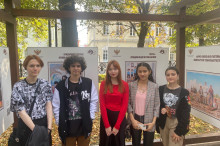 Студенты-дизайнеры 2 курса в рамках изучения дисциплины «Профессиональная педагогика» под руководством Заслуженного работника высшей школы РФ профессора Хоменко Вадима Ивановича посетили экспозицию выставки «Образ педагогов и наставников в произведениях молодых художников» в Нарышкинском сквере на Страстном бульваре.