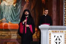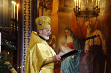 Рождественское послание Святейшего Патриарха Московского и всея Руси Кирилла архипастырям, пастырям, диаконам, монашествующим и всем верным чадам Русской Православной Церкви огласил Ключарь Кафедрального соборного Храма Христа Спасителя протоиерей Михаил Рязанцев.