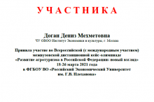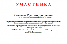 С 18 по 26 марта 2021 года студенты кафедры туризма приняли участие во Всероссийской (с международным участием) межвузовской дистанционной кейс-олимпиаде «Развитие агротуризма в Российской Федерации: новый взгляд», под руководством заведующей кафедрой туризма Филатовой Марии Сергеевны, профессора кафедры туризма Ткалича Алексея Ивановича, профессора кафедры туризма Хоменко Вадима Ивановича, доцента кафедры туризма Соломиной Ирины Юрьевны и преподавателя кафедры туризма Желнина Александра Николаевича.