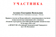 Всероссийская (с международным участием) межвузовская дистанционная кейс-олимпиада «Развитие агротуризма в Российской Федерации: новый взгляд» по направлению подготовки 43.03.02 «Туризм» была организована и проводилась кафедрой индустрии гостеприимства, туризма и спорта факультета Гостинично-ресторанной, туристической и спортивной индустрии Федерального государственного бюджетного образовательного учреждения высшего образования «Российский экономический университет им. Г.В. Плеханова». Олимпиада проводилась с использованием дистанционных технологий, на платформе Zoom.