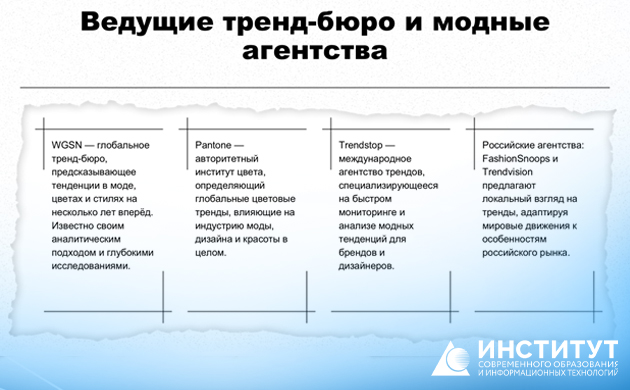 - эксклюзивный список тренд‑бюро и модных агентств для первых контактов;