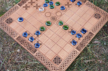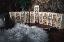Набор для игры был реконструирован и изготовлен в мастерской «Мастер Torwood» при участии студентов 3 курса направления подготовки «Графический дизайн» Павла Нетычука и Георгия Бартенева – ребята разработали забавные стилизованные изображения викингов и нанесли их на деревянные кубы с помощью станка ЧПУ лазерной гравировкой.