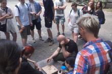 После небольшого исторического экскурса и инструктажа о правилах игры развернулись захватывающие баталии. Участники соревновались в меткости, ловкости и тактической грамотности. Игроки команд, которые ждали своей очереди, бурно поддерживали участников и смогли попробовать свои силы в настольной игре «Мельница», которая быстро завоевала новых поклонников из числа наших студентов.