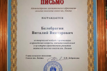Руководитель библиотеки Мария Сергеевна Мошонова вручила Виталию Викторовичу благодарственное письмо, подписанное главой Администрации сельского поселения Совхоз имени Ленина Еленой Ивановной Добренковой.