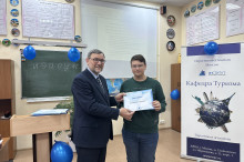 Во вступительной части Алексей Иванович рассказал школьникам о деятельности кафедры туризма и возможных профессиях, в которых они смогут себя реализовать.