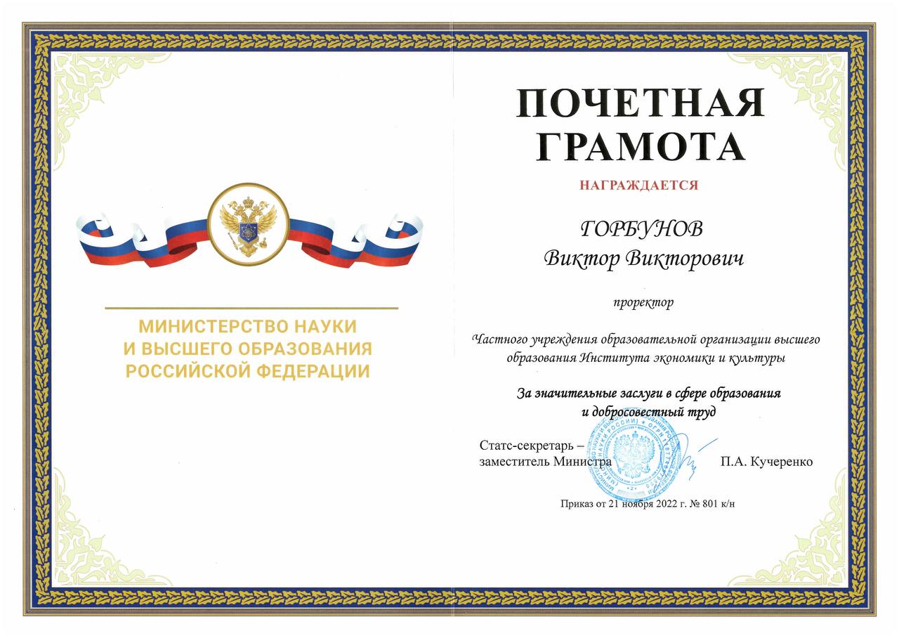 Виктор Викторович Горбунов получил ведомственную награду Минобрнауки России