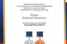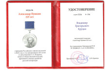 Владимир Круцко награжден медалью А.С. Пушкина