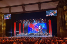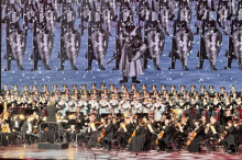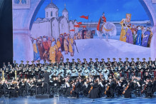 На сцене прозвучала знаменитая кантата Сергея Прокофьева «Александр Невский», состоящая из семи частей — «Русь под игом монгольским», «Песня об Александре Невском», «Крестоносцы во Пскове», «Вставайте, люди русские», «Ледовое побоище», «Мертвое поле» и «Въезд Александра во Псков», в исполнении прославленного Московского государственного академического симфонического оркестра (художественный руководитель и главный дирижёр – Иван Никифорчин), Академического ансамбля песни и пляски Российской армии имени А.В. Александрова и Государственной академической хоровой капеллы России имени А.А. Юрлова (художественный руководитель и главный дирижёр – народный артист России Геннадий Дмитряк). Оперная певица меццо-сопрано Юлия Меннибаева выступила солисткой в части «Мёртвое поле». Ее исполнение глубоко впечатлило зрителей и привнесло особую эмоциональность произведению.