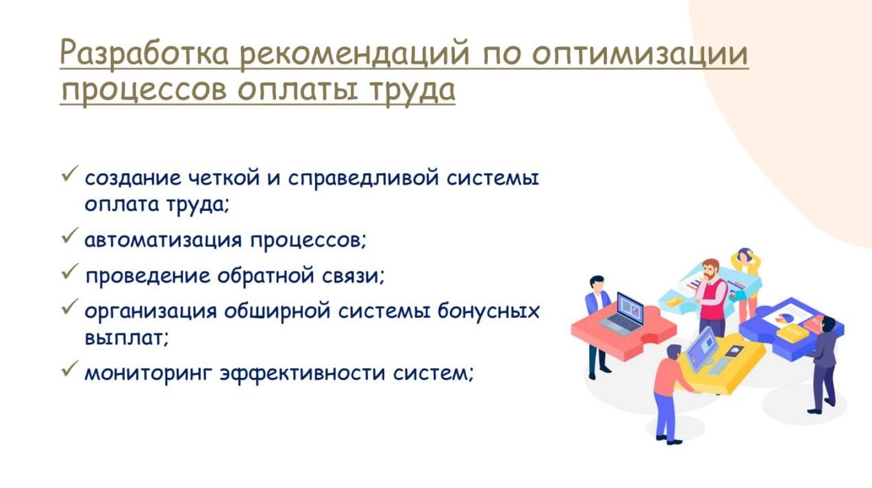 ⁃ комбинированной системе оплаты труда, как наиболее эффективной, сочетающей стабильность и мотивацию к повышению качества обслуживания.